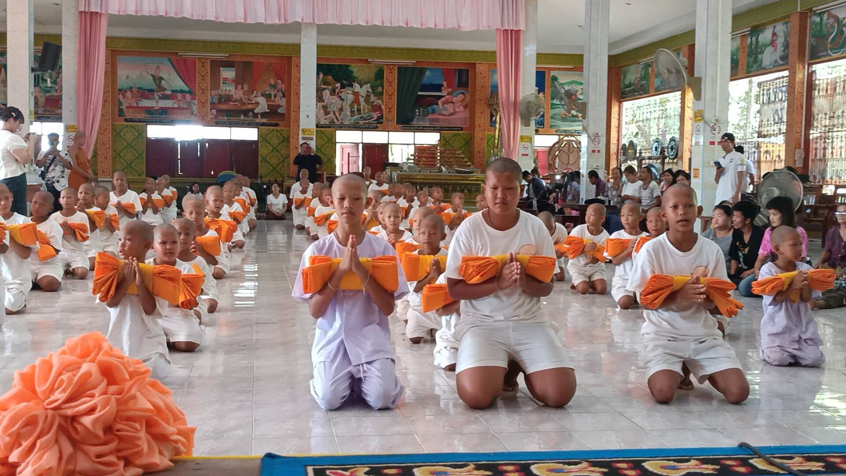 นางพิกุล พลป้อง แม่ลูกแฝด กล่าวว่าคุณแม่ต้องทำงานนะคะต้องหาเลี้ยงคนในครอบครัวอีก 3คนค่ะก็เป็นห่วงลูกอยากให้ลูกมาอยู่ตรงนี้ จะได้ฝึกสมาธิฝึกการเป็นอยู่ช่วยเหลือตัวเองได้ค่ะในช่วงที่โรงเรียนหยุดปิดเทอมเป็นห่วงเขา มาบวชอยู่กับพระจะได้ความรู้เพิ่มเติมคิดว่าจะให้ลูกบวชจนครบกำหนดวัน ปีกลายก็เคยมาบวชแล้วครั้งหนึ่ง