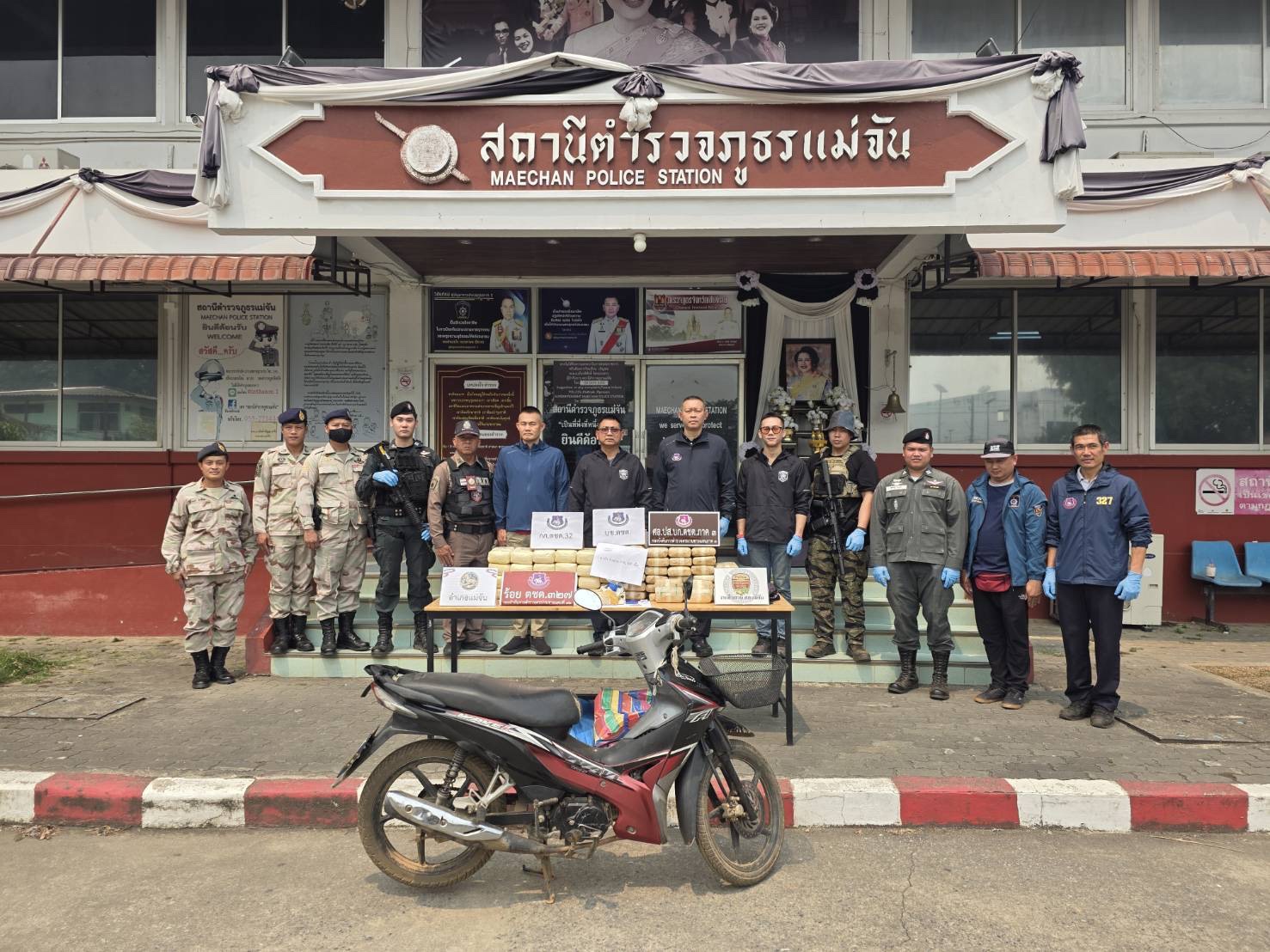 เวลา 10.00 น. วันที่ 5 เมษายน 2569 พล.ต.ต.วรพัฒน์ บุญมา ผบก.ตชด.ภาค 3 มอบให้พ.ต.อ.รังสิมันต์ สงเคราะห์ธรรม รอง ผบก.ตชด.ภาค 3 พ.ต.อ.รัฐกร อินทนิล ผกก.ตชด.32 พ.ต.ท.ชวลิต คำตื้อ รอง ผกก.ตชด.32 หัวหน้า ร้อย.ตชด.327, พ.ต.ต.ธนวัฒน์ ทิพวรี ผบ.ร้อย ตชด.327 เจ้าหน้าที่ สภ.แม่ จัน โดย พ.ต.อ.เกียรติศักดิ์ จิตรประสาร ผกก.สภ.แม่จัน ฉก.ทพ.31 กองกำลังผาเมือง ฝ่ายปกครอง พร้อมด้วยหน่วยงานที่เกี่ยวข้อง ร่วมกันตรวจยึดของกลาง ยาเสพติดให้โทษประเภท 1 (ยาบ้า) บรรจุอยู่ภายในถุงกระสอบฟาง จำนวน 2 กระสอบ รวมประมาณ 418,000 เม็ด รถจักรยานยนต์ ยี่ห้อฮอนด้า รุ่นเวฟ สีดำแดง หมายเลขทะเบียน เชียงราย