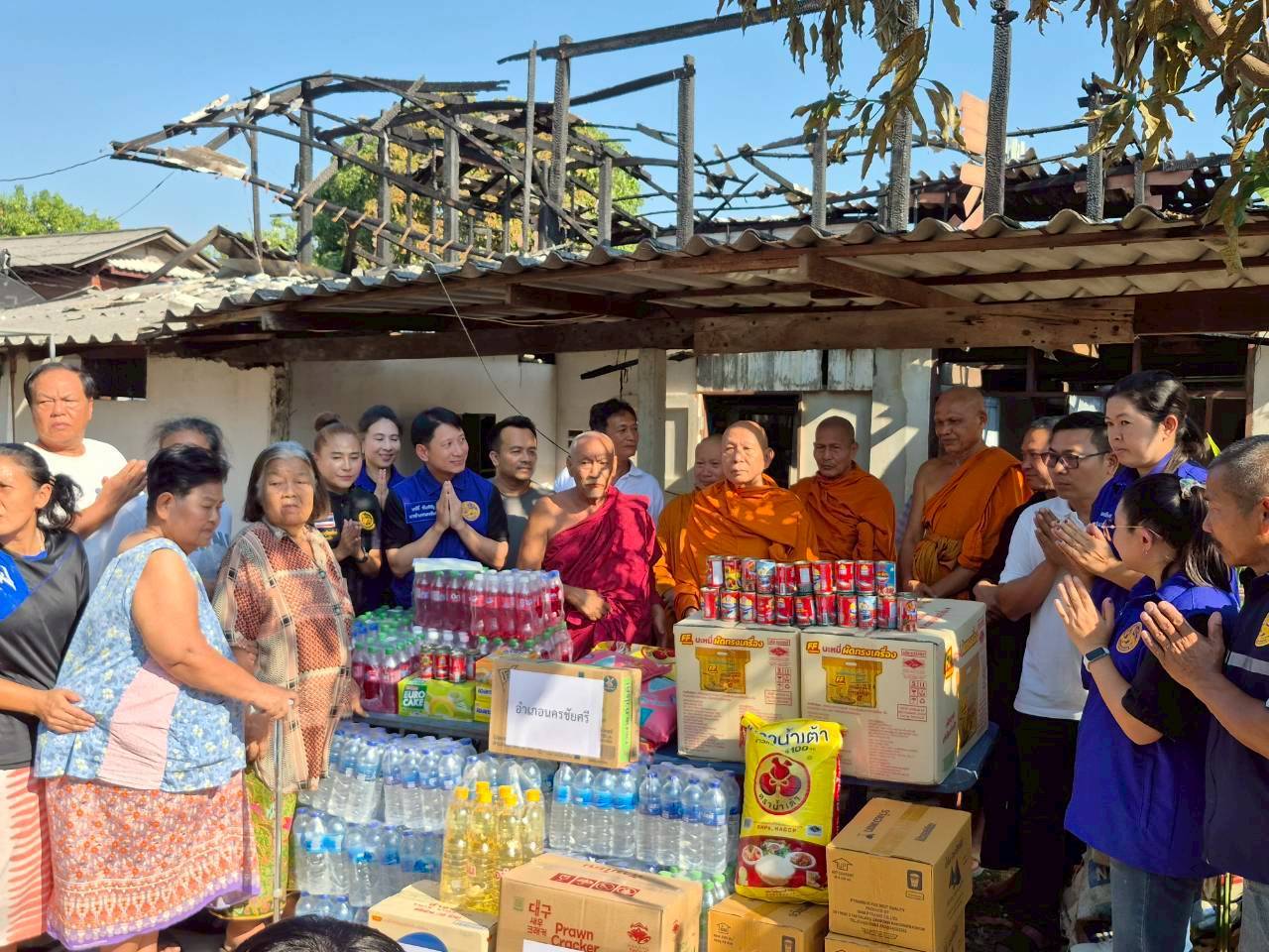 โดยในการลงพื้นที่ดังกล่าวยังได้รับเมตตาจากคณะสงฆ์พื้นที่อำเภอนครชัยศรี นำโดย พระครูยติธรรมานุยุต เจ้าอาวาสวัดสว่างอารมณ์, พระครูปฐมวชิราคม เจ้าอาวาสวัดกลางบางแก้ว, พระครูปฐมชยาภิวัฒน์ เจ้าอาวาสวัดใหม่สุประดิษฐาราม, พระครูปฐมสรคุณ เจ้าอาวาสวัดบางแก้ว และพระครูใบฎีกาวีระ กิจจสาโร เจ้าอาวาสวัดตุ๊กตา ได้ร่วมกับคณะเพื่อสนับสนุนสิ่งของเครื่องใช้ให้กับครอบครัวผู้ประสบภัยเช่นกัน