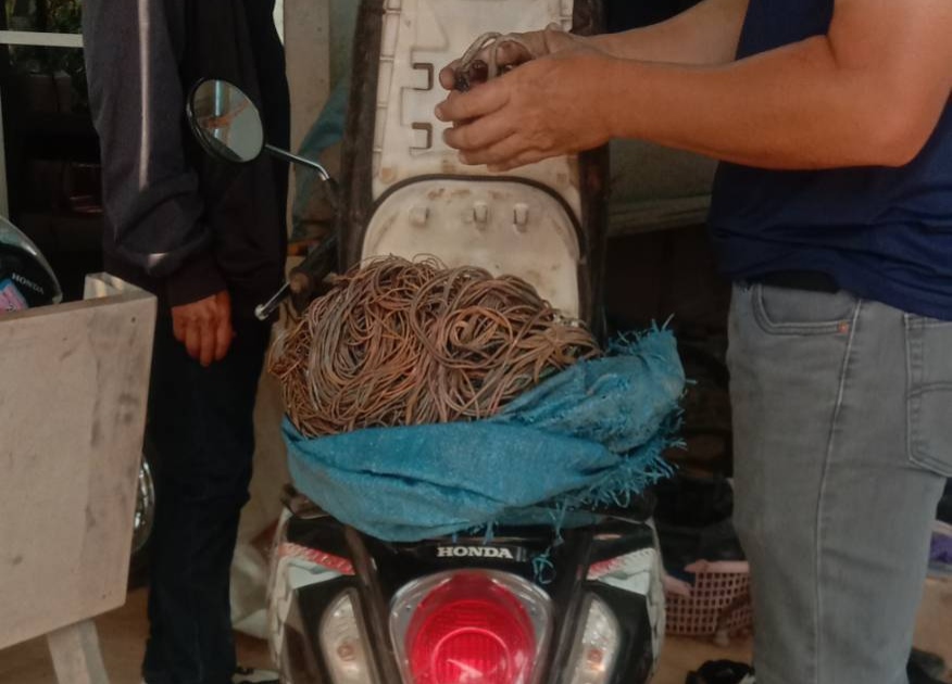 หลังรับแจ้ง เจ้าหน้าที่ได้ลงพื้นที่สืบสวนอย่างต่อเนื่อง จนสามารถระบุตัวผู้ก่อเหตุได้ชัดเจน ก่อนเข้าตรวจสอบที่บ้านพักของผู้ต้องหา พบมีท่าทางพิรุธ จึงเชิญตัวมาสอบสวน ซึ่งผู้ต้องหาให้การรับสารภาพว่าเป็นผู้ก่อเหตุลักสายไฟจริง และได้นำเจ้าหน้าที่ไปตรวจยึดของกลาง เป็นสายไฟที่ถูกเผาเหลือเฉพาะทองแดง ซุกซ่อนอยู่ใต้เบาะรถจักรยานยนต์หน้าบ้าน