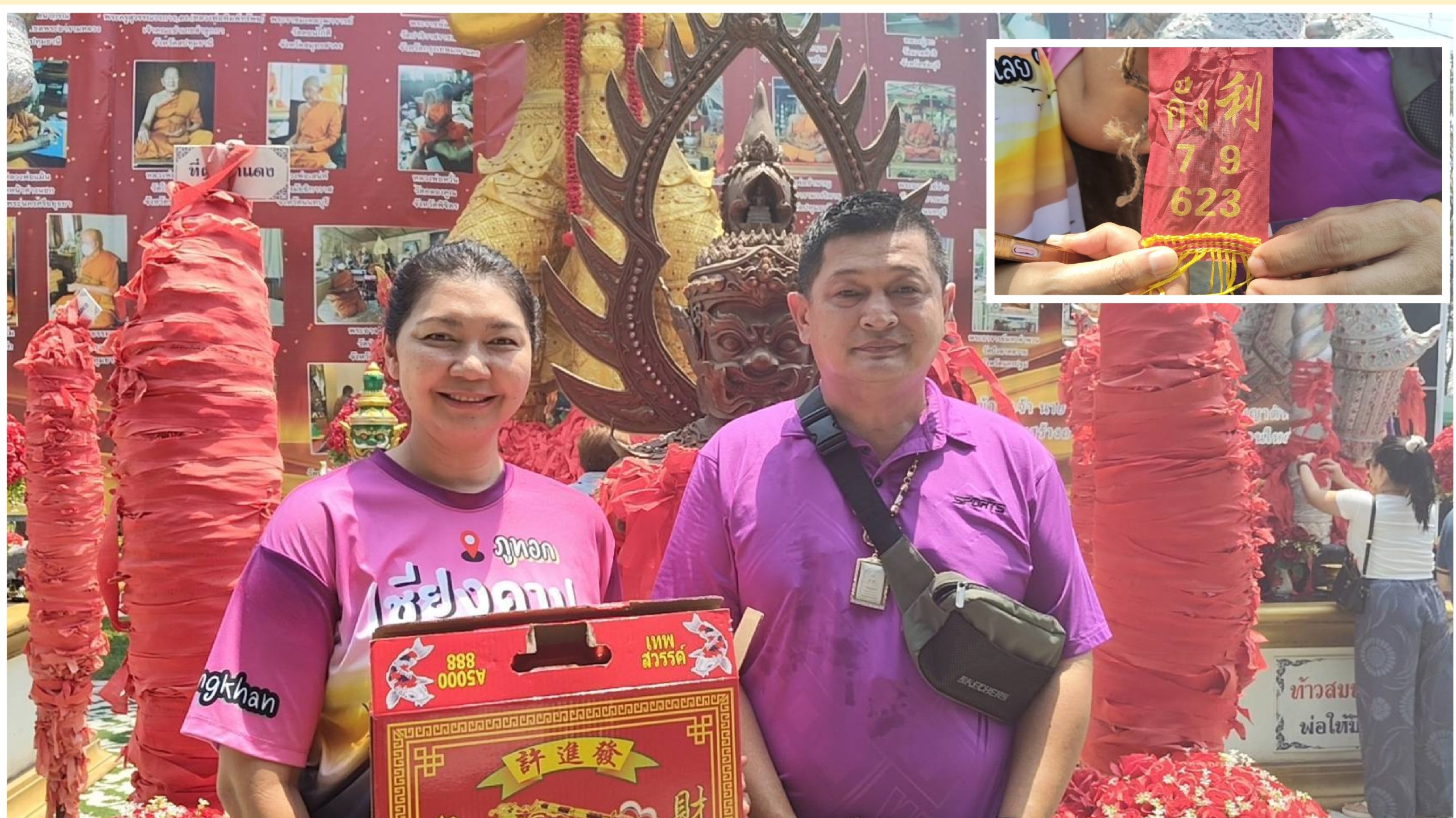 ด้านนายวราวุฒิ นางสาวศศิธร พฤกษวัน นำประทัด 5,000 นัดพร้อมด้วยเครื่องเซ่นไหว้มาแก้บนท้าวเวสสุวรรณหลังขายบ้านราคากว่าล้านได้สำเร็จ นายวราวุฒิและนางสาวศศิธรกล่าวว่าตนทั้ง 2 คนมาแก้บนท้าวเวสสุวรรณหลังจากประสบความสำเร็จในเรื่องหน้าที่การงาน ซึ่งตนทำงานที่บริษัทTS HAPPYHOME เป็นพนักงานขายบ้านหรือเซลล์ขายบ้านที่รีโนเวทเสร็จแล้วในย่านคลองแปด รังสิต-นครนายก ซึ่งก่อนหน้านี้ตนได้มาขอพรกับองค์ท้าวเวสสุวรรณไว้ว่าหากสามารถปิดการขายบ้านและโอนบ้านให้ลูกค้าได้สำเร็จตนก็จะกลับมาจุดประทัดถวายให้ท่าน นายวราวุฒิยังกล่าวอีกว่าที่ผ่านมาตนและครอบครัวมักจะมาขอพรกับท้าวเวสสุวรรณเฉพาะเวลาที่มีโครงการบ้านหรือทรัพย์สินที่ต้องดูแลในโซนคลองเจ็ดหรือคลองแปด ซึ่งเป็นพื้นที่ที่เชื่อว่าท้าวเวสสุวรรณท่านดูแลปกปักษ์รักษาอยู่ หากครั้งไหนที่สามารถปิดการขายได้ก็จะมาแก้บนด้วยการจุดประทัดถวายเสมอ ซึ่งถ้านับรวมครั้งนี้ด้วยก็ถือว่ามาแก้บนสำเร็จเป็นครั้งที่ 10 กว่าแล้ว และล่าสุดตนเพิ่งจะขายบ้านไปได้อีกหนึ่งหลังจึงรีบเดินทางมาแก้บนท้าวเวสสุวรรณอีกครั้ง เพื่อความเป็นสิริมงคลและเป็นขวัญกำลังใจในการทำงานต่อไป และก่อนกลับยังได้จุดประทัดได้เลข 79 623 นำกลับไปลุ้นโชคอีกต่อด้วย