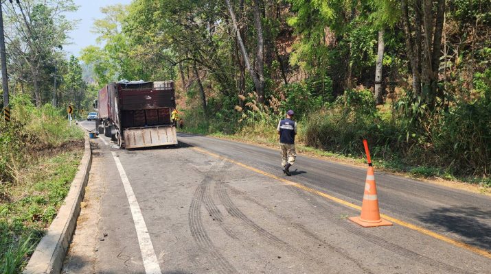 วันนี้ (10 เมษายน 2569) นายวรศักดิ์ พานทอง นายอำเภอแม่สะเรียง ลงพื้นที่ตรวจสอบจุดเกิดเหตุอุบัติเหตุรถบรรทุกพ่วงไฟไหม้ บริเวณทางหลวงแผ่นดินหมายเลข 108 (ช่วงระหว่างบ้านแม่เหาะ – แม่สะเรียง) พบเป็นรถบรรทุกกระเบื้องน้ำหนักรวม 30,500 กิโลกรัม เดินทางมาจากจังหวัดสระบุรีเพื่อมุ่งหน้าเข้าสู่ตัวอำเภอแม่สะเรียง