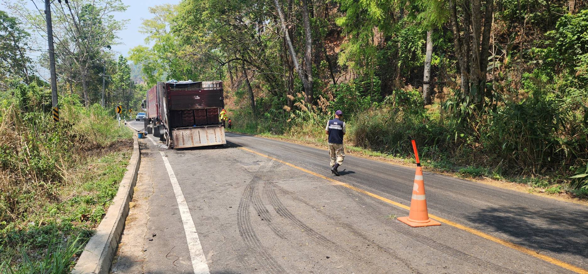เฝ้าระวังต่อเนื่อง: เจ้าหน้าที่ทุกฝ่ายจะประจำจุดเพื่ออำนวยความสะดวก จนกว่าจะดำเนินการเคลื่อนย้ายรถพ่วงและวัสดุออกจากที่เกิดเหตุได้สำเร็จ เพื่อเปิดเส้นทางให้กลับมาใช้งานได้ตามปกติอย่างปลอดภัย