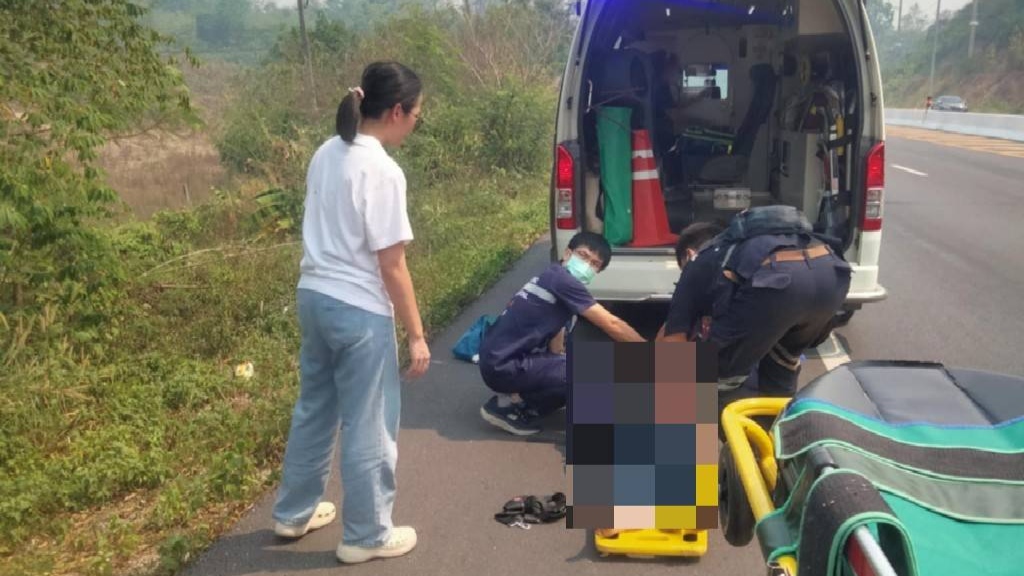 เมื่อไปถึง พบพยาบาลหญิงรายหนึ่ง (สวมเสื้อสีขาว) ซึ่งปฏิบัติงานอยู่ที่โรงพยาบาลแห่งหนึ่งในจังหวัดชลบุรี และเป็นชาวอำเภอเชียงกลาง ได้ให้การช่วยเหลือผู้บาดเจ็บเบื้องต้นก่อนแล้ว โดยได้พบเหตุระหว่างเดินทางกับครอบครัว จึงเข้าช่วยเหลืออย่างมีจิตสาธารณะ