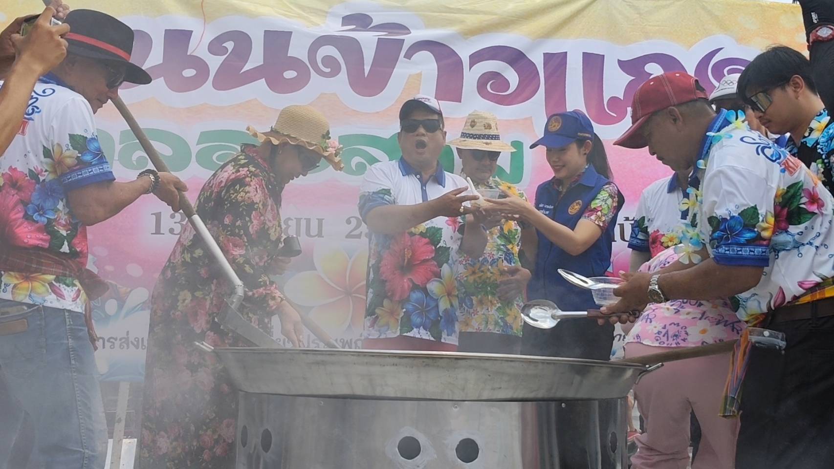 ปทุมธานี อบต.คลองสามจัดสงกรานต์ถนนข้าวแกงยิ่งใหญ่โชว์ข้าวผัดจานยักษ์แจกจ่ายประชาชนที่มาเที่ยวงาน