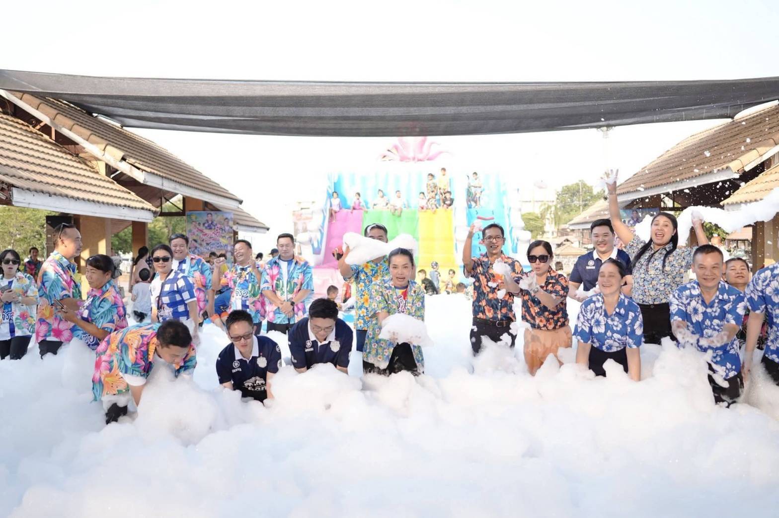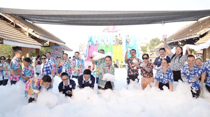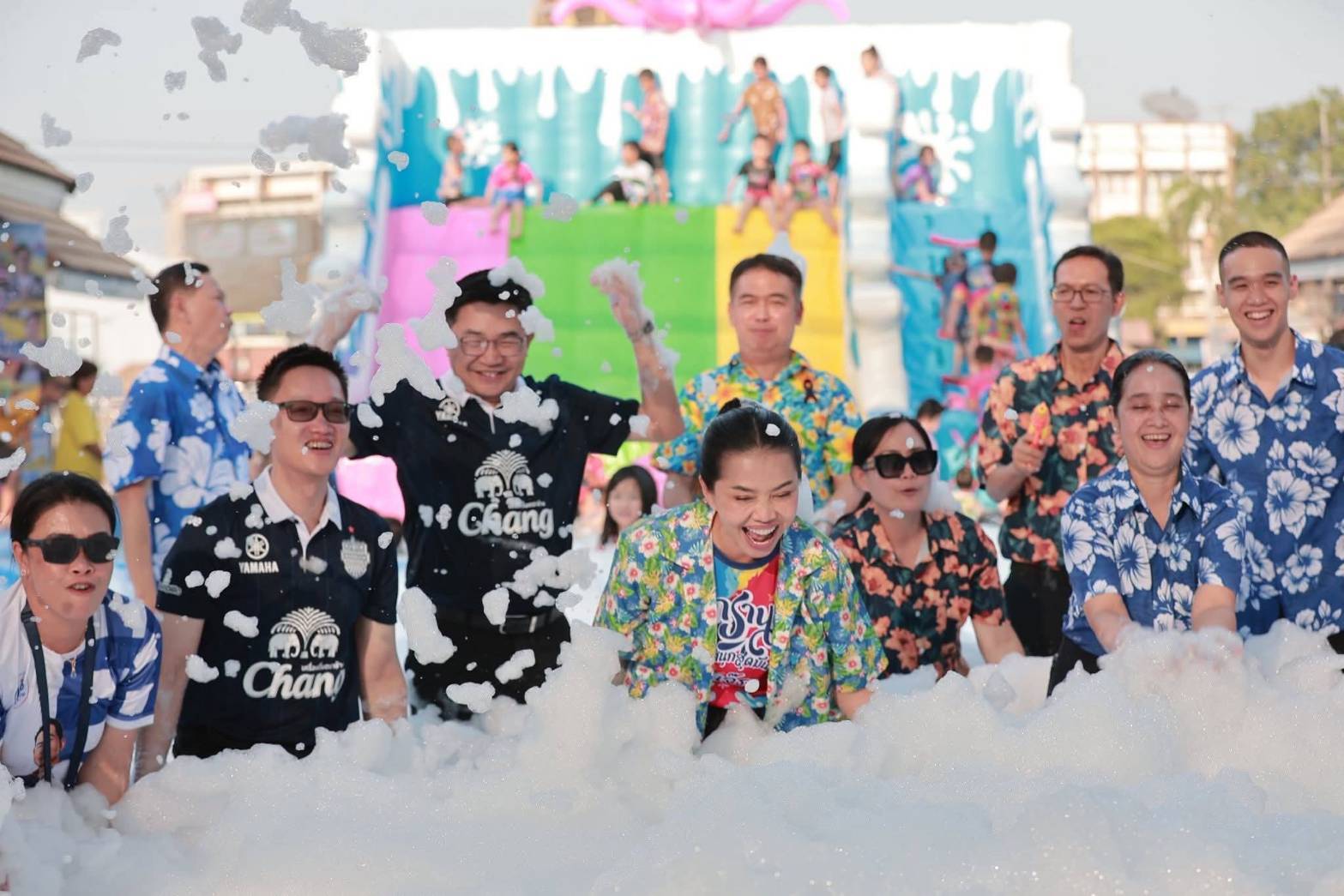 นางสุขสมรวย วันทนียกุล รัฐมนตรีประจำสำนักนายกรัฐมนตรี พร้อมด้วย นายเสนีย์ ส้มเขียวหวาน ผู้ว่าราชการจังหวัดอำนาจเจริญ, นางผุสณี ส้มเขียวหวาน นายกเหล่ากาชาดจังหวัดอำนาจเจริญ และหัวหน้าส่วนราชการ ลงพื้นที่ตรวจเยี่ยมความพร้อมของกิจกรรม และร่วมเล่นปาร์ตี้โฟมกับเด็ก ๆ สร้างบรรยากาศแห่งความสุขและรอยยิ้ม เพื่อให้ประชาชนได้ร่วมเฉลิมฉลองเทศกาลอย่างอบอุ่นและปลอดภัย