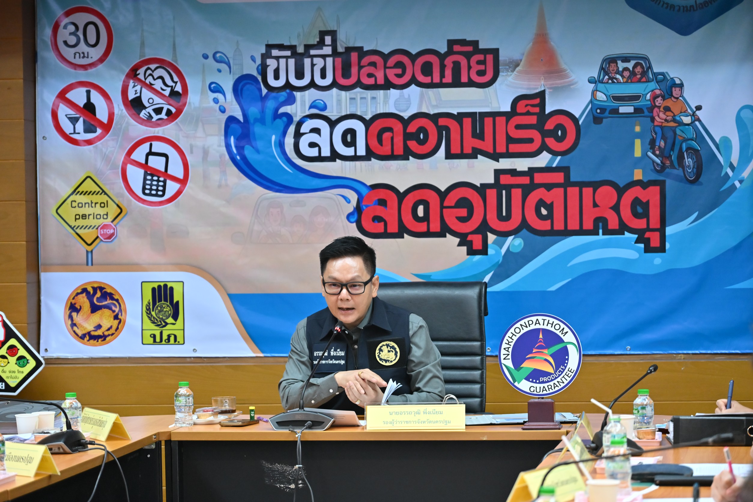 วันพุธที่ 15 เมษายน 2569 เวลา 09.30 น. นายอรรถวุฒิ พึ่งเนียม รองผู้ว่าราชการจังหวัดนครปฐม เป็นประธานติดตามสถานการณ์และสรุปผลการดำเนินการของศูนย์ปฏิบัติการป้องกันและลดอุบัติเหตุทางถนน ช่วงเทศกาลสงกรานต์ พ.ศ. 2569 จังหวัดนครปฐม พร้อมด้วยผู้แทนจาก หน่วยงานที่เกี่ยวข้อง ประชุมผ่านสื่ออิเล็กทรอนิกส์ ณ ห้องประชุมอภิรมย์ฤดี ชั้น 4 ศาลากลางจังหวัดนครปฐม
