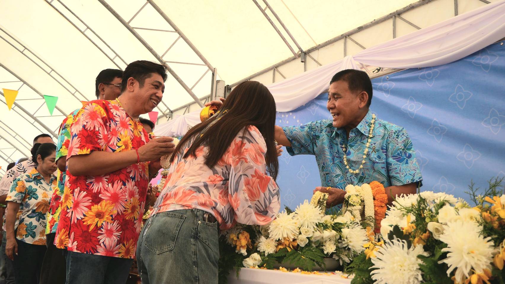 โดยได้รับความเมตตาจาก พระราชสมุทรวัชราจารย์ เจ้าคุณบุญสืบ เจ้าอาวาสวัดกลางวรวิหาร พระอารามหลวงชั้นโท เป็นประธานฝ่ายสงฆ์ นำคณะพระสงฆ์ วัดกลางวรวิหาร เจริญพระพุทธมนต์ ประพรมน้ำพระพุทธมนต์ เพื่อความเป็นสิริมงคล จากนั้น เป็นพิธีรดน้ำดำหัวขอพร จากนายกสุนทร ปานแสงทอง นายกองค์การบริหารส่วนจังหวัดสมุทรปราการ นางจันทร์เพ็ญ ปานแสงทอง ภรรยานายก พล.ต.ต.วิชิต บุญชินวุฒิกุล รอง ผบช.ภ.1. พล.ต.ต.ภูมินทร์ สิงหสุต ผู้บังคับการตำรวจภูธรจังหวัดสมุทรปราการ นายสมควร ชูไสว ประธานสภา อบจ.สมุทรปราการ นางสาวสุกัญญา อัศวเหม ประธานสภาเทศบาลนครสมุทรปราการ เพื่อความเป็นสิริมงคลแก่ตนเองและครอบครัว