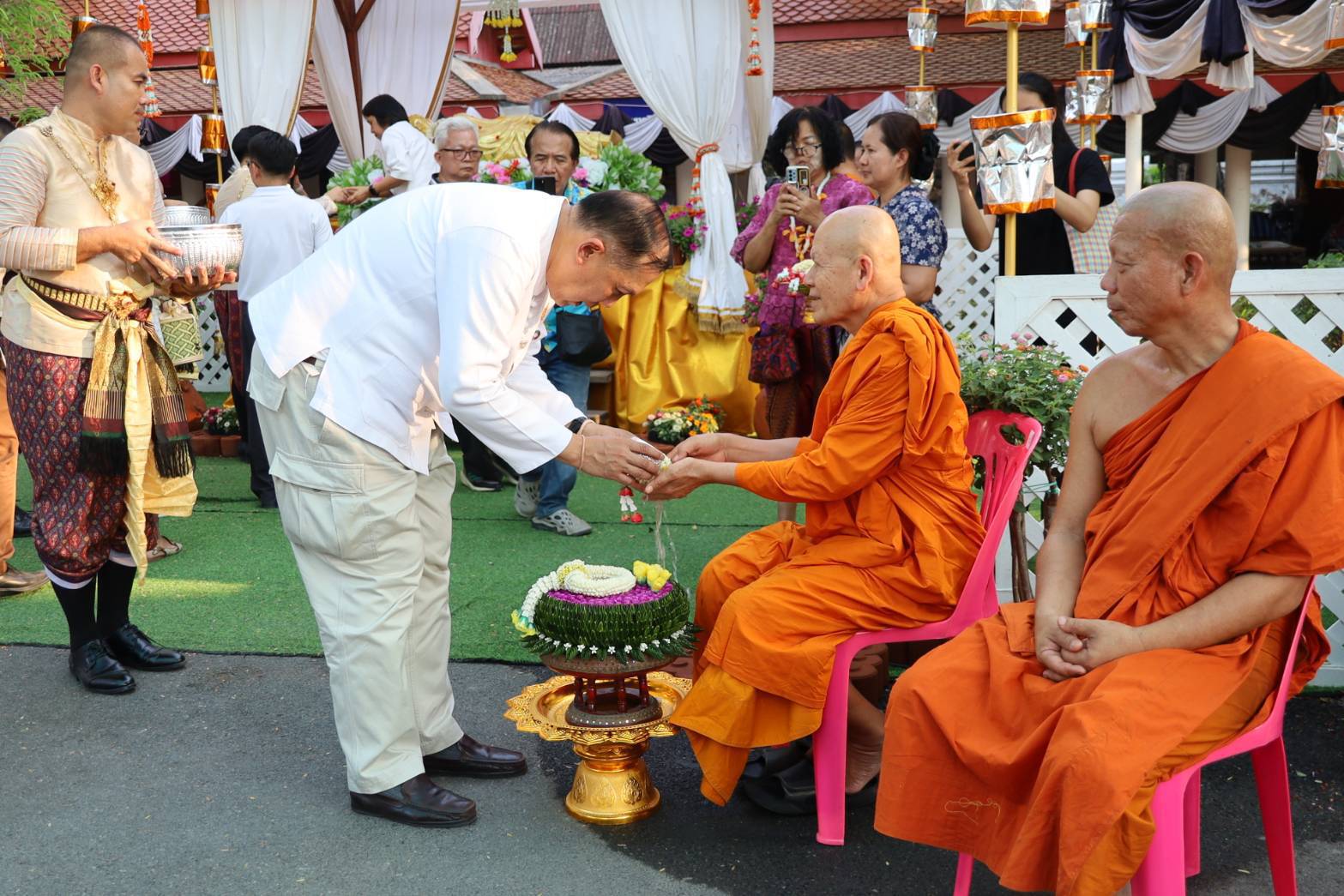โดยมี นายวราดิศร อ่อนนุช ผู้ว่าราชการจังหวัดสิงห์บุรี เป็นประธานฝ่ายฆราวาส พร้อมด้วย พล.ต.ต.ชัยรพ จุณณวัตต์ ผู้บังคับการตำรวจภูธรจังหวัดสิงห์บุรี นางสาววีรวรรณ จันทนเสวี รองผู้ว่าราชการจังหวัดสิงห์บุรี นายอำเภอเมือง หัวหน้าส่วนราชการ ข้าราชการ ตลอดจนพุทธศาสนิกชนและนักท่องเที่ยวจำนวนมาก เข้าร่วมพิธีอย่างเนืองแน่น ณ ศาลาอเนกประสงค์ วัดพระนอนจักรสีห์ วรวิหาร