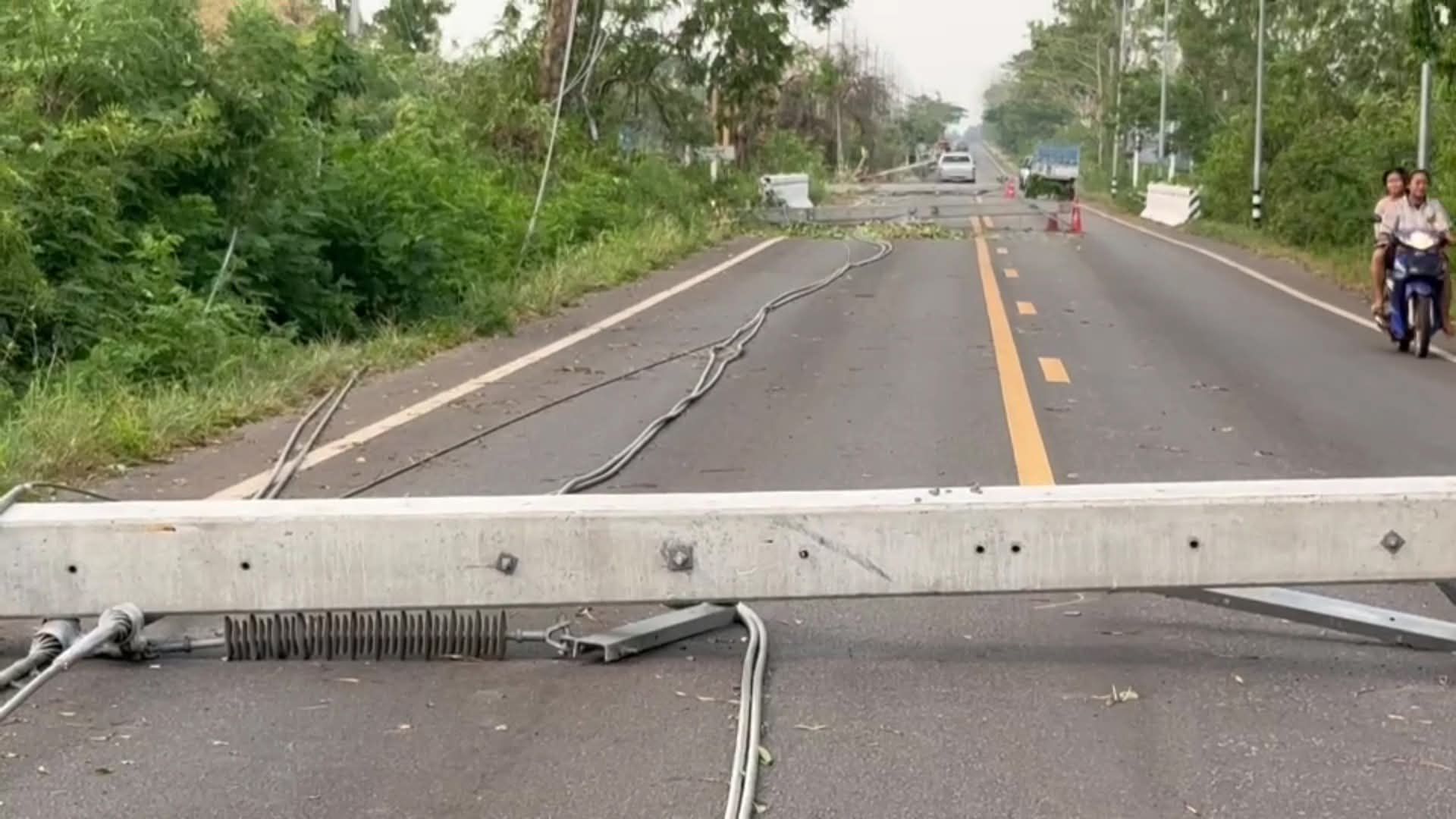 วันที่ 18 เมษายน 2569 นายประภาส โยธา ผู้จัดการการไฟฟ้าส่วนภูมิภาคจังหวัดสกลนคร ระดมสรรพกำลัง จนท.พร้อมเครื่องจักรเครื่องมือ ตลอดจนเสาไฟฟ้าเข้าซ่อมแซม หลังจากที่พายุฤดูร้อนพัดถล่มที่บ้านนาเพียงเก่า ต.นาเพียง อ.กุสุม่ลย์ เมื่อตอยบ่าย 2 วันทีา 17 เมษายน ที่ผ่านมา ทำให้บ้านเรือนราษฎรกว่า 225 หลัง ถูกพายุพัดหลังคาได้รับความเสียหาย แต่ไม่มีผู้บาดเจ็บหรือเสียชีวิต นอกจากนี้แรงลมได้พัดต้นไม้หักโค่นเป็นจำนวนมาก กระแสลมยังได้พัดเสาไฟฟ้าแรงสูง ขนาด 22 เมตรล้มหักโค่นจำนวน 15 ต้น ริมถนนสายท่าแร่-ศรีสงคราม ระยะทางยาว 1,500 เมตร ซึ่งขณะนี้ จนท.การไฟฟ้าได้ตั้งศูนย์อำนวยการขึ้นที่ทางเข้าหมู่บ้านนาเพียงเก่า เพื่อทำการเปลี่ยนเสาที่หักออกทั้งหมด จากนั้นพรุ่งนี้ก็จะพาดสาย และทำการจ่ายไฟฟ้าได้ เมื่อคืนที่ผ่านมาทำการซ่อมแซมจนจ่ายไฟได้ 100% จนเสร็จตอน 5 ทุ่ม เราระดมกำลังทำอย่างเต็มที่คาดว่าไม่เกิน 3 วันจะเข้าสู่ภาวะปกติ นายประภาสกล่าว