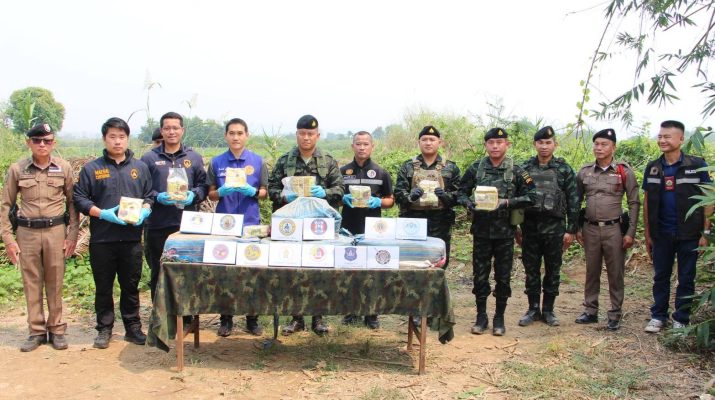 เมื่อเวลา 10.00 น.วันที่ 19 เมษายน 2569 พลตรี สาธิต ไวยนนท์ ผู้บัญชาการกองกำลังผาเมือง มอบหมายให้ พันเอก ธวัฒน์ อินกอง รองผู้บังคับหน่วยเฉพาะกิจทัพเจ้าตาก ฝ่ายปกครอง เจ้าหน้าที่ตำรวจ สภ.เกาะช้าง อ.แม่สาย จ.เชียงราย พร้อมด้วยหน่วยงานที่เกี่ยวข้อง ร่วมทำการตรวจสอบ ยาเสพติดประเภทที่ 1 (ไอซ์) จำนวน 4 กระสอบ น้ำหนักรวมประมาณ 92 กิโลกรัม หลังจากที่ยึดได้จากการปะทะกันระหว่างกลุ่มผู้ลำเลียงยาเสพติดกับ กำลังทหาร กองร้อยทหารม้าที่ 4 กองบังคับการควบคุมผามทิฬ หน่วยเฉพาะกิจทัพเจ้าตาก กองกำลังผาเมือง