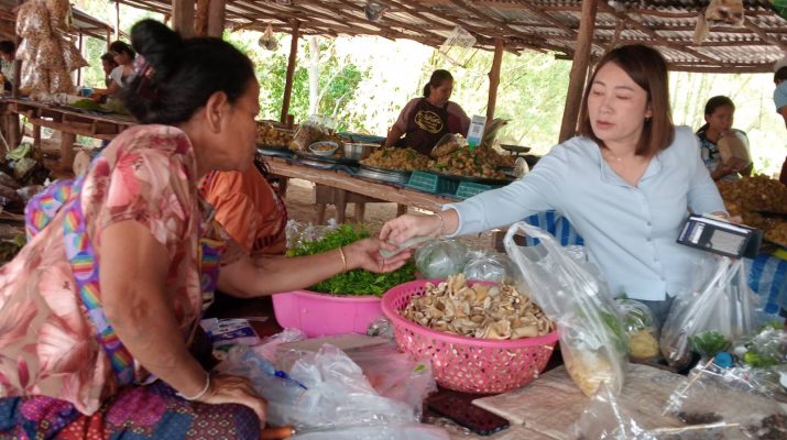 นางสาวลัดดาวรรณ พรหมเลิศ บ้านคำมันปลา ต.คำเหมือดแก้ว อ.ห้วยเม็ก จ.กาฬสินธุ์ กล่าวว่า ตนทำงานที่ จ.ระยอง กลับมาเยี่ยมบ้านทุกปีในช่วงเทศกาลสงกรานต์ โดยวันนี้พาครอบครัวมาซื้ออาหารป่า จำพวก ไข่มดแดง แมงแคงค้อ ไข่จักจั่น หวาย ผักหวานป่า รวมทั้งอาหารพื้นเมืองต่างๆ ไปปรุงอาหารรับประทาน และซื้อของป่าหายากไปฝากเพื่อนที่ทำงานด้วย ทั้งนี้ เป็นอาหารประจำถิ่นหรืออาหารตามฤดูกาล หากินยาก รสชาติอร่อย เพราะที่ทำงานไม่มีอาหารป่าอย่างที่ตลาดโสกหินขาวจำหน่ายเลย ดังนั้น ทุกปีที่มาเยี่ยมบ้าน ตนก็จะมาซื้อไปทำอาหารและเป็นของฝากดังกล่าว ซึ่งต้องขอขอบคุณพ่อค้าแม่ค้าทุกราย ที่ไม่เอาเปรียบผู้บริโภค และฉวยโอกาสขึ้นราคาในช่วงนี้