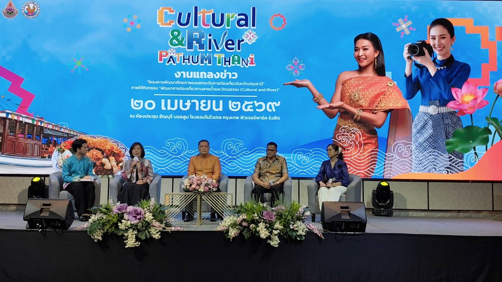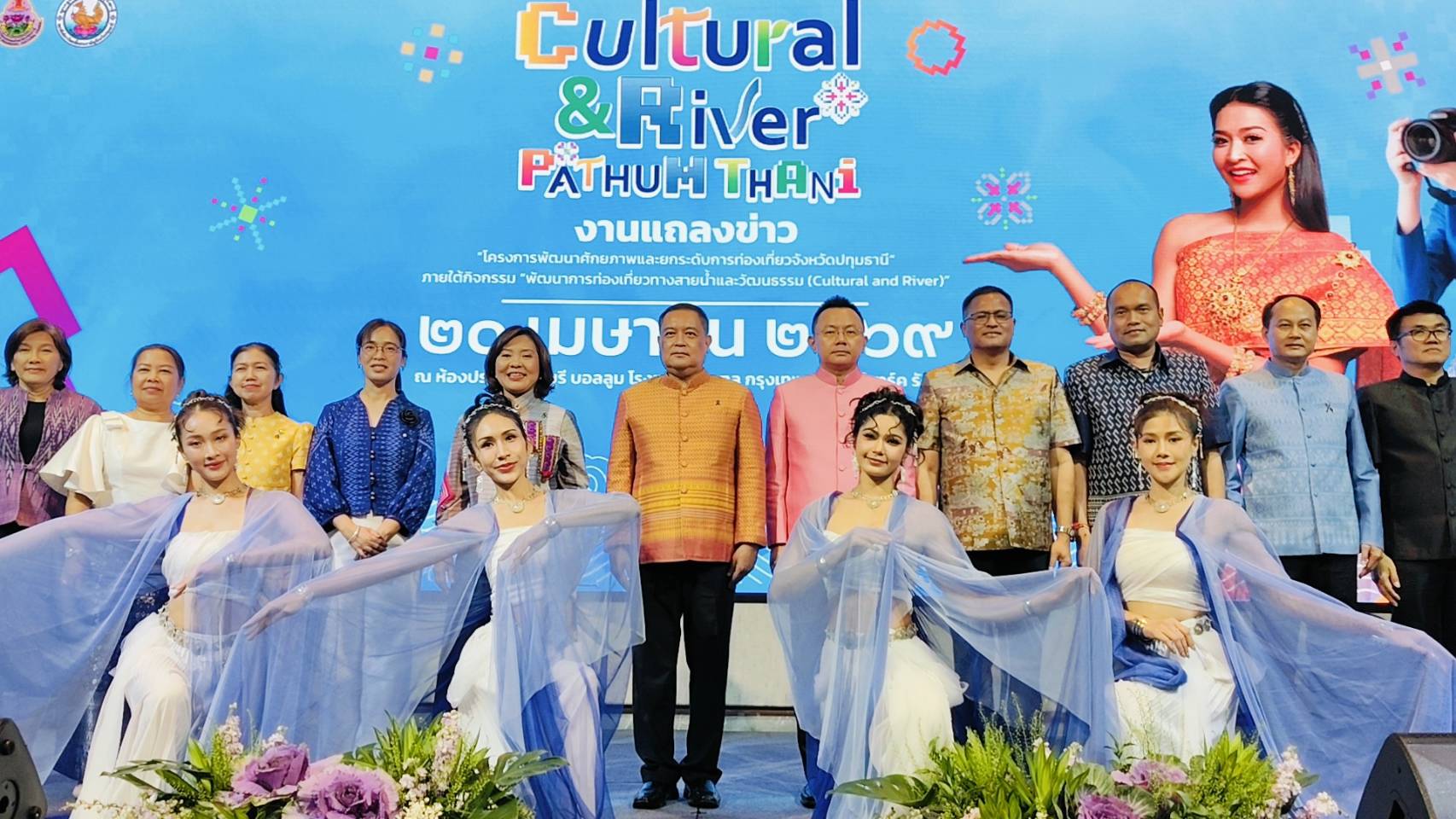 จังหวัดปทุมธานี ได้จัดงานแถลงข่าว “โครงการพัฒนาศักยภาพและยกระดับการท่องเที่ยวจังหวัดปทุมธานี” ภายใต้กิจกรรมหลัก “พัฒนาการท่องเที่ยวทางสายน้ำและวัฒนธรรม (Cultural and River)” เพื่อขับเคลื่อนการท่องเที่ยวเชิงวัฒนธรรมให้เกิดผลอย่างเป็นรูปธรรม และสร้างมูลค่าเพิ่มทางเศรษฐกิจอย่างยั่งยืน โดยมี นายเอกวิทย์ มีเพียร ผู้ว่าราชการจังหวัดปทุมธานี เป็นประธาน พร้อมด้วย นางลัษมา ธารีเกษ วัฒนธรรมจังหวัดปทุมธานี นายอารุช เอมโอฐ นายอำเภอเมืองปทุมธานี และ นางสาวบุษราภรณ์ ปานคง นายอำเภอสามโคก ร่วมแถลงแนวทางการดำเนินโครงการดังกล่าว