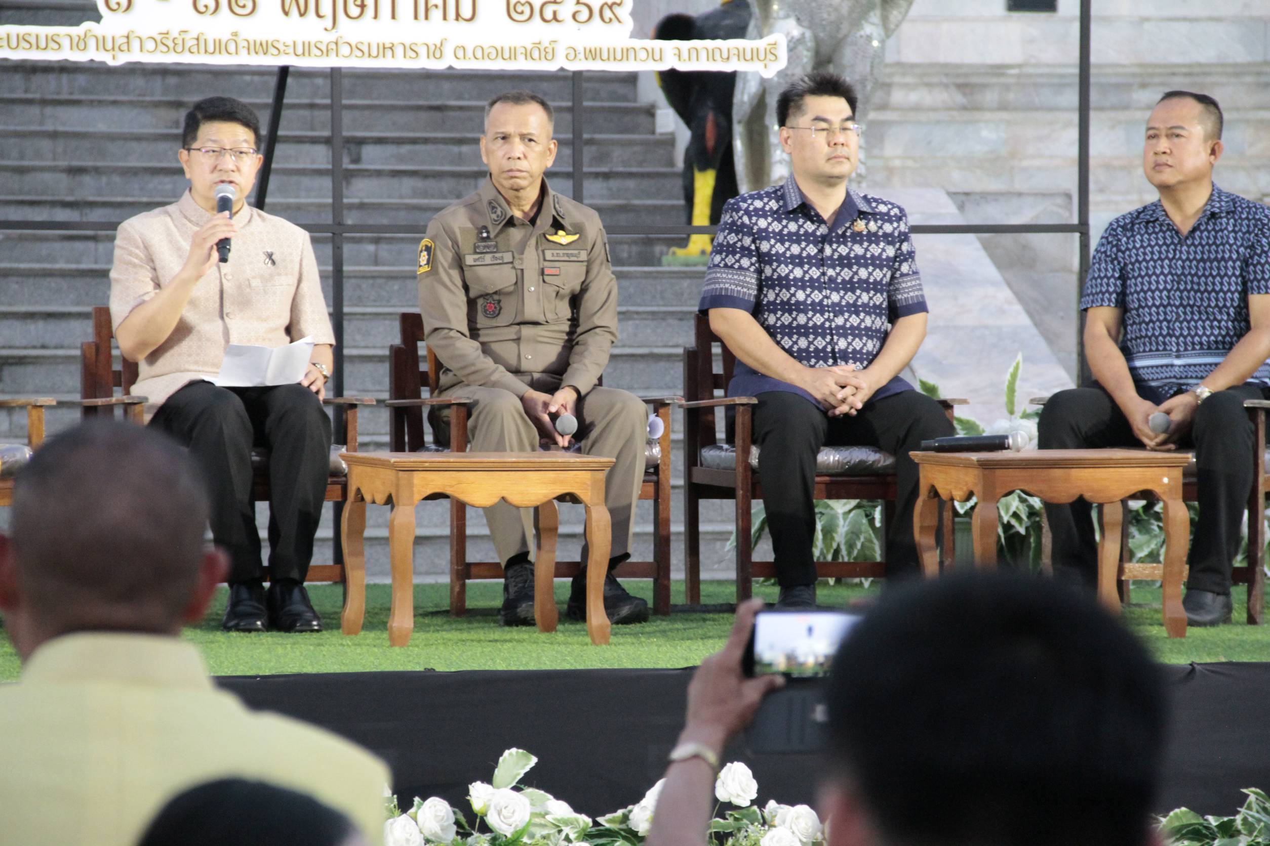 ผู้สื่อข่าวรายงานว่า วันที่ 21 เมษายน 2569 เวลา 18.30 น. ที่ผ่านมา ณ บริเวณลานพระบรมราชานุสาวรีย์ สมเด็จพระนเรศวรมหาราช ตำบลดอนเจดีย์ อำเภอพนมทวน จังหวัดกาญจนบุรี สำนักการท่องเที่ยวและกีฬาจังหวัดกาญจนบุรี จัดแถลงข่าวการจัดงานเทิดพระเกียรติสมเด็จพระนเรศวรมหาราช ประจำปี 2569 โดยนางสาววริษฐา สงวนเสริมศรี ผู้ว่าราชการจังหวัดกาญจนบุรี ได้มอบหมายให้ นายสิทธิวีร์ วรรณพฤกษ์ รองผู้ว่าราชการจังหวัดหวัดกาญจนบุรี เป็นประธานการแถลงข่าว โดยมี นางสาวจรรยารักษ์ สาธิตกิจ ผู้อำนวยการท่องเที่ยวและกีฬาจังหวัดกาญจนบุรี พร้อมด้วย พลตำรวจตรีพศวีร์ เรืองภู่ ผู้บังคับการตำรวจภูธรจังหวัดกาญจนบุรี,นายดำรงค์ มากระจัน พัฒนาการจังหวัดกาญจนบุรี,นางสาวพรพรรณ กลิ่นเกสร วัฒนธรรมจังหวัดกาญจนบุรี,นายสุเทพ วงศ์วัชรมงคล นายอำเภอพนมทวน และนายเอนก กาญจนแพทย์กุล นายกเทศมนตรีตำบลดอนเจดีย์ ร่วมแถลงข่าวในครั้งนี้
