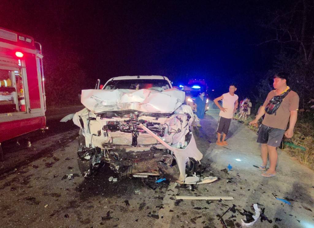 จากการตรวจสอบพบว่า รถยนต์ MU-X ได้รับความเสียหายหนักบริเวณด้านหน้า จอดอยู่ในเลนของตนเอง ส่วนรถกระบะอีกคันถูกชนจนตกไหล่ทาง สภาพพังเสียหายอย่างรุนแรงด้านข้างซ้าย