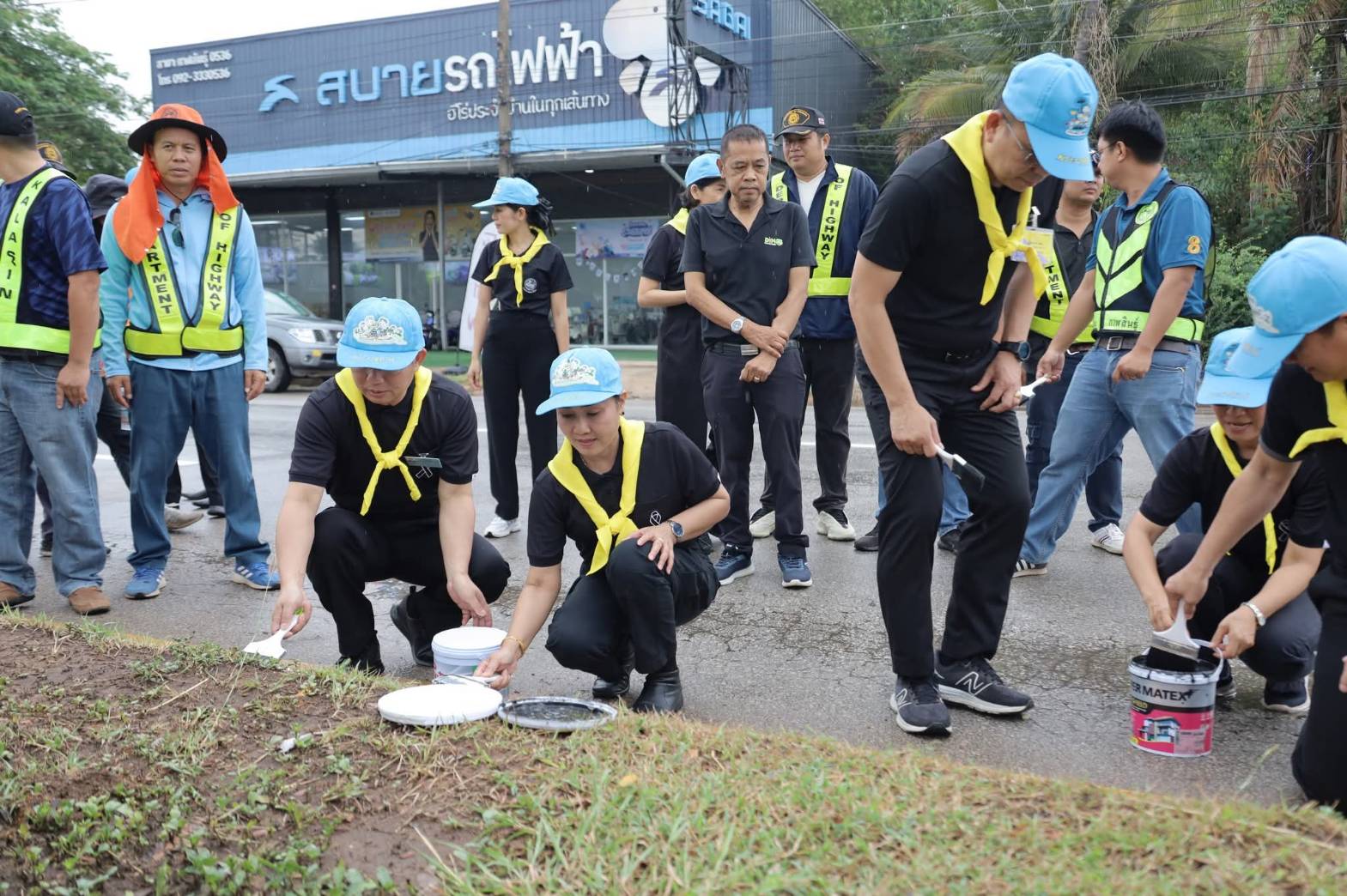 ร่วมกันฉีดน้ำแรงดันสูงล้างพื้นถนนและกวาดน้ำทำความสะอาดพื้นถนนบริเวณวัดประชานิยม พระอารามหลวง พื้นที่รับเสด็จฯ พระบาทสมเด็จพระเจ้าอยู่หัว และสมเด็จพระนางเจ้าฯพระบรมราชินี เสด็จพระราชดำเนินทรงประกอบพิธีตัดหวายลูกนิมิตพระอุโบสถ ณ วัดประชานิยม พระอารามหลวง อำเภอเมืองกาฬสินธุ์ จังหวัดกาฬสินธุ์ ในวันเสาร์ที่ 16 พฤษภาคม 2569
