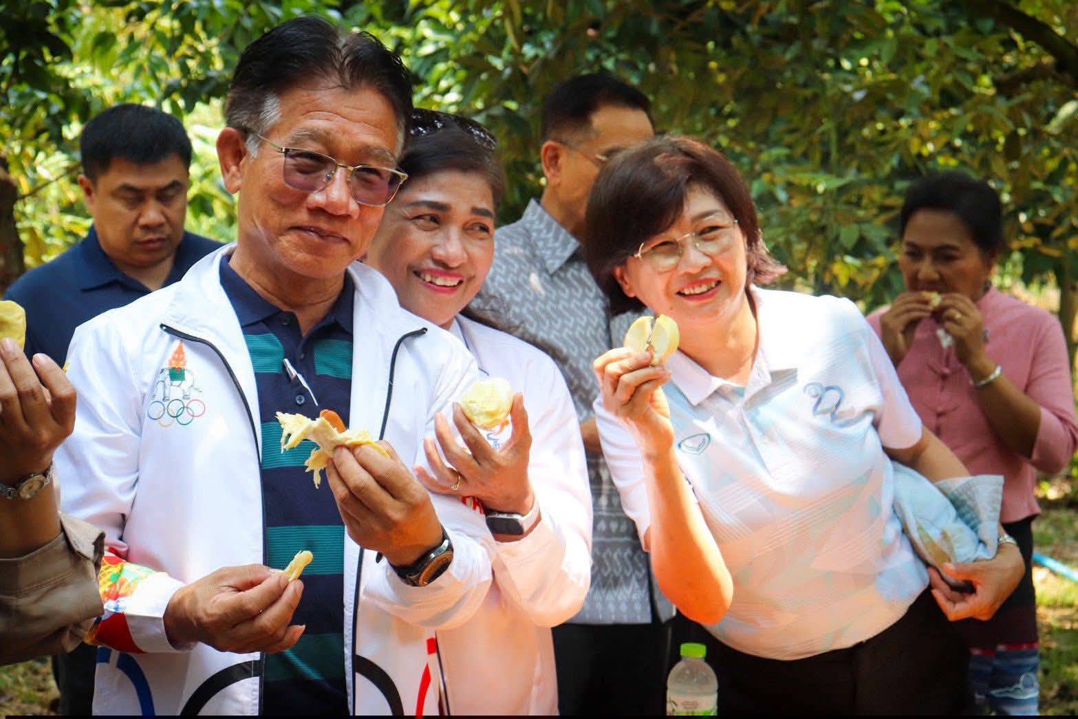 จากนั้น นายฑรัท เหลืองสอาด รองผู้ว่าราชการจังหวัดกาญจนบุรี ได้ลงพื้นที่เยี่ยมชมสวนทุเรียนในพื้นที่อำเภอทองผาภูมิอย่างใกล้ชิด ซึ่งกิจกรรมนี้นอกจากจะเป็นการส่งสัญญาณเริ่มต้นฤดูกาลผลไม้ที่สำคัญของจังหวัดแล้ว ยังเป็นการสร้างความมั่นใจให้กับผู้บริโภคและนักท่องเที่ยว ตลอดจนช่วยกระตุ้นเศรษฐกิจและสร้างรายได้ให้กับพี่น้องเกษตรกรชาวสวนทุเรียนจังหวัดกาญจนบุรีอย่างเป็นรูปธรรม