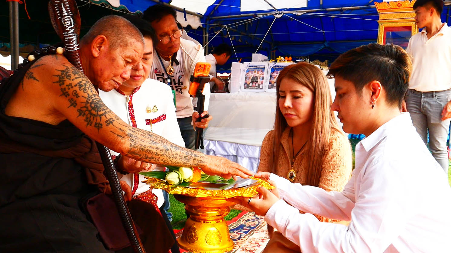 โดยมีหลวงปู่คัมภีร์ คัมฺภีโร วัดป่าพุทธาราม บ้านคำกั้ง ตำบลเหล่าใหญ่ อำเภอกุฉินาราย จังหวัดกาฬสินธุ์ อริยสงฆ์เจ้า สาย ลป หงษ์ พรหมปัญโญ เป็นประธานฝ่ายสงฆ์ มีหม่อมราชวงศ์ ปณิธาน จรูญโรจน์ พร้อมด้วย ดร.อาณัติ วัชรางกุร ณ เชียงใหม่ ที่ปรึกษากิตตมศักดิ์คณะกรรมาธิการท่องเที่ยวและกีฬา วุฒิสภา ที่ปรึกษาชมรมสื่อออนไลน์ เป็นประธานพิธีวางศิลาฤกษ์