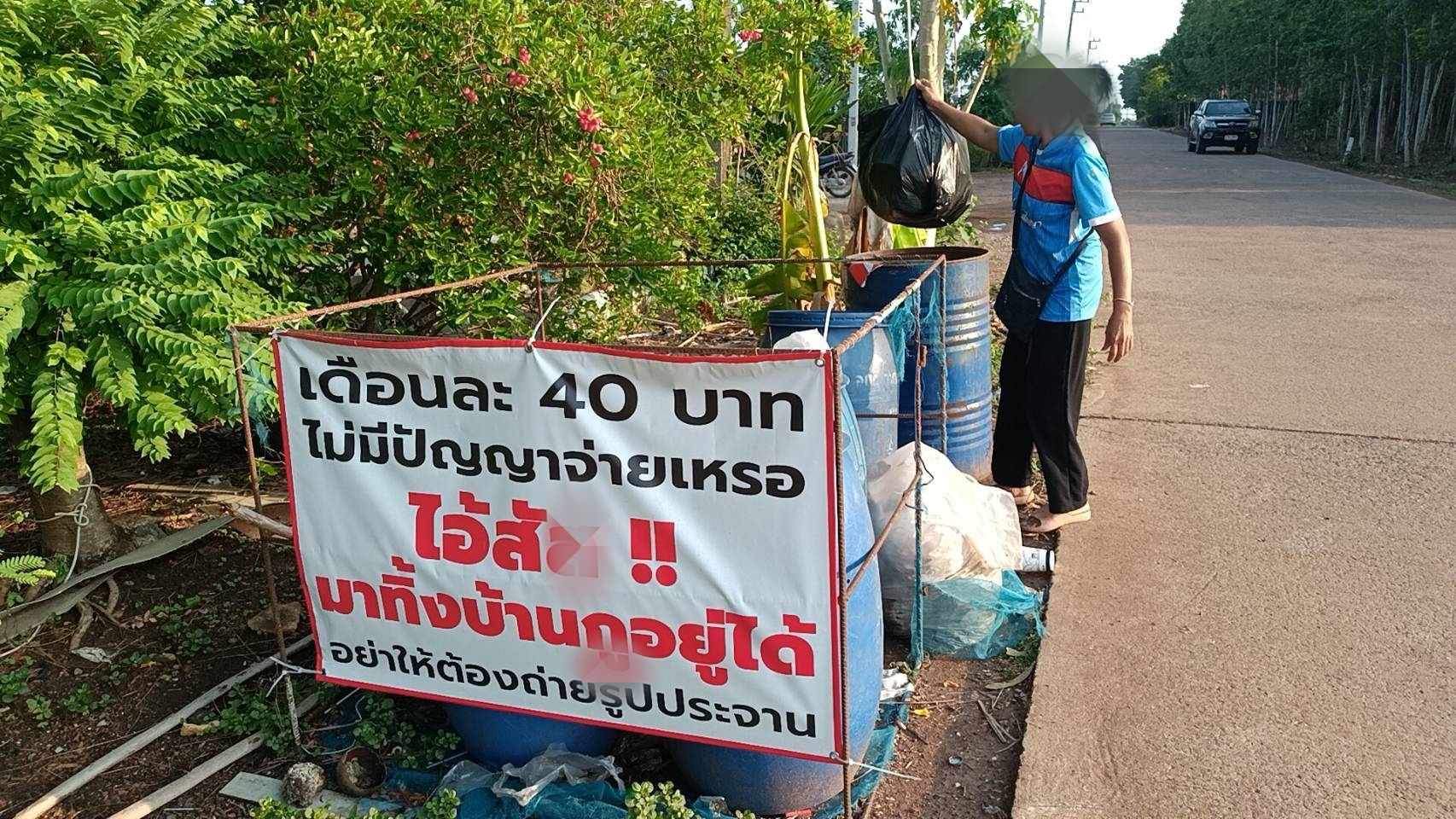 วันที่ 28 เมย.69 ผู้สื่อข่าวจังหวัดปราจีนบุรีรายงานว่ามีสาวใหญ่รายหนึ่งในพื้นที่ต.ลาดตะเคียน อ.กบินทร์บุรี จ.ปราจีนบุรี ติดป้ายไวนิลขนาด 60×100 ไว้ที่ที่ถังขยะหน้าบ้านตัวหนังสือสีดำขนาดใหญ่มีข้อความระบุว่า “เดือนละ 40 บาทไม่มีปัญญาจ่ายเหรอไอ้….มาถึงบ้านตรูได้อย่าให้ต้องถ่ายรูปประจาน”