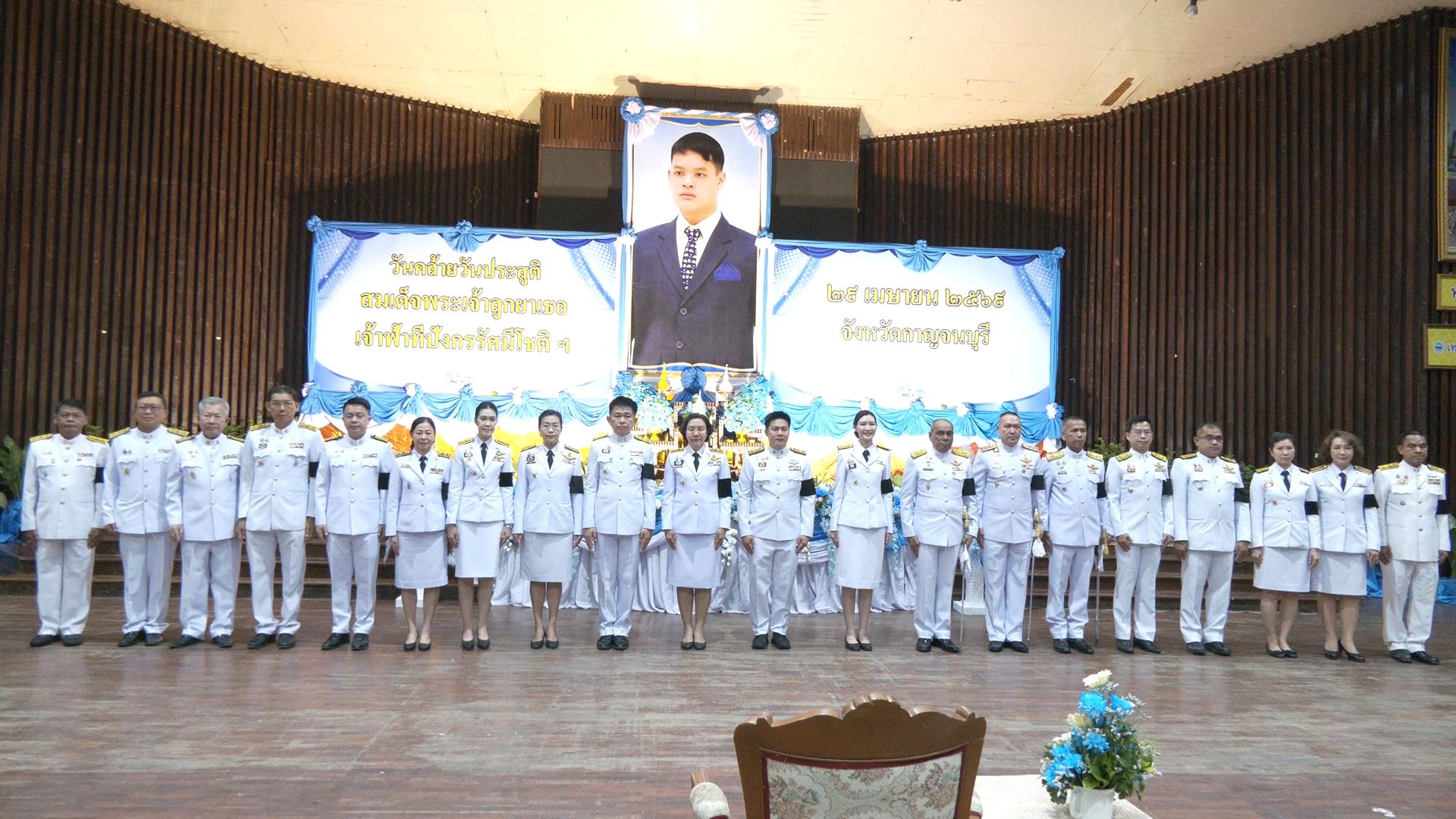 วันนี้ 29 เมษายน 2569 ผู้สื่อข่าวรายงานว่านางสาววริษฐา สงวนเสริมศรี ผู้ว่าราชการจังหวัดกาญจนบุรี เป็นประธานพิธีทำบุญตักบาตรถวายพระราชกุศล เนื่องในวันคล้ายวันประสูติ สมเด็จพระเจ้าลูกยาเธอ เจ้าฟ้าทีปังกรรัศมีโชติ มหาวชิโรตตมางกูร สิริวิบูลยราชกุมาร 29 เมษายน 2569 โดยมี นายวุฒิพงษ์ สุภัควนิช นางพรรณวิภา ปิยัมปุตระ รองผู้ว่าราชการจังหวัดกาญจนบุรี ข้าราชการ ศาล ทหาร ตำรวจ เจ้าหน้าที่ และประชาชน ร่วมพิธีฯ ณ ศาลา 60 พรรษามหาราช เทศบาลเมืองกาญจนบุรี จังหวัดกาญจนบุรี