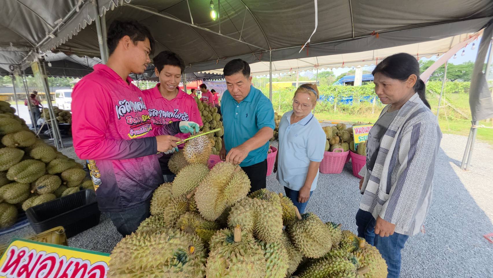 ทั้งนี้ ราคาทุเรียนที่จำหน่ายในงานมีหลากหลายระดับ ตั้งแต่เกรดพรีเมียมกิโลกรัมละ 119 บาท หมอนทองจันทร์กิโลกรัมละ 99 บาท หมอนทองระยองกิโลกรัมละ 79 บาท และสายพันธุ์อื่น ๆ เช่น ชะนี กระดุม ในราคากิโลกรัมละ 59 บาท
