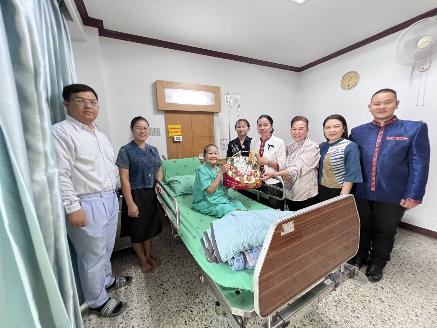วันที่ 29 เมษายน 2569 ที่ตึกพิเศษชั้น 3 โรงพยาบาลกาฬสินธุ์ นายสุวรรธณ์ เข็มธนเพ็ชร ผู้ว่าราชการ จ.กาฬสินธุ์ พร้อมด้วย นพ.สมชาย ชมภูคำ นายแพทย์สาธารณสุข จ.กาฬสินธุ์ พญ.จารุพรรณ มโนสิทธิศักดิ์ ผอ.โรงพยาบาลกาฬสินธุ์ นำกระเช้าสุขภาพ เข้าเยี่ยมแม่คำสอน สระทอง อายุ 87 ปี ศิลปินแห่งชาติ ปี 2559 ด้านประณีตศิลป์ -ทอผ้า “ผ้าไหมวิจิตรแพรวา” หลังเข้าพักรักษาที่โรงพยาบาลกาฬสินธุ์ เมื่อวานนี้ (28 เม.ย.) ด้วยอาการปวดท้องอย่างรุนแรง โดยมีคณะผู้บริหาร แพทย์ พยาบาล บุคลากร รพ.กาฬสินธุ์ ให้การต้อนรับและอัพเดทอาการ ที่พบว่าอาการทั่วไปดีขึ้น และคาดว่าอีก 2-3วันก็สามารถออกจากโรงพยาบาลได้แล้ว