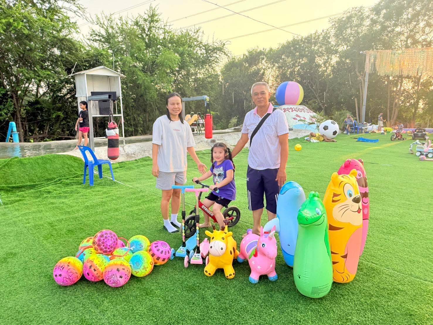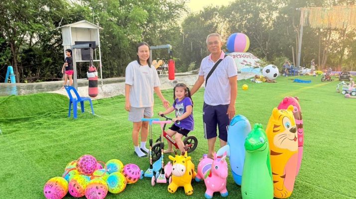 จากนั้นได้แบ่งออกเป็นสถานที่ให้เป็นลานอเนกประสงค์ปูหญ้าเทียมมีรถไฟฟ้าให้กับเด็กเล็กได้มาขับเล่น รวมทั้งเจาะน้ำบาดาลในการทำสวนน้ำและจัดซื้อเครื่องเล่นสไลเดอร์ให้เด็กได้เล่นน้ำที่ทำเป็นบ่อน้ำขนาดเล็กในการให้เด็กได้ฝึกว่ายน้ำเล่น ขณะที่ผู้ปกครองก็สามารถมาออกกำลังกายกับเครื่องออกกำลังกายที่ได้รับการสนับสนุนจากทางองค์การบริหารส่วนจังหวัดลพบุรี นอกจากนี้ยังจัดหาเรือถีบให้ผู้ที่มาได้นั่งเรือถีบในสระน้ำและให้อาหารปลาที่ปล่อยลงในสระน้ำประมาณ 5 หมื่นตัว สำหรับบริเวณรอบสระน้ำดังกล่าวก็สามารถมาใช้ออกกำลังการด้วยการเดิน วิ่ง ขี่จักรยาน ท่ามกลางอากาศที่บริสุทธิ์ รวมทั้งจัดสถานที่จอดรถ ห้องน้ำ ไว้ให้อย่างเป็นสัดส่วนและยังมีพื้นที่ในการนั่งรับประทานอาหารพูดคุยกัน ขณะที่บางวันก็จะมีการนำอาหารมาเลี้ยงให้กับเด็ก ๆ และผู้ปกครองที่เดินทางมาใช้บริการ โดยตั้งชื่อสถานที่ออกกำลังกายแห่งนี้ว่า ”สวนสุขภาพหนองบัวยาว” โดยมีเจ้าหน้าที่คอยดูแลในเรื่องความปลอดภัย ซึ่งผู้ที่มาใช้บริการไม่เสียค่าใช้จ่ายอะไรทั้งสิ้น
