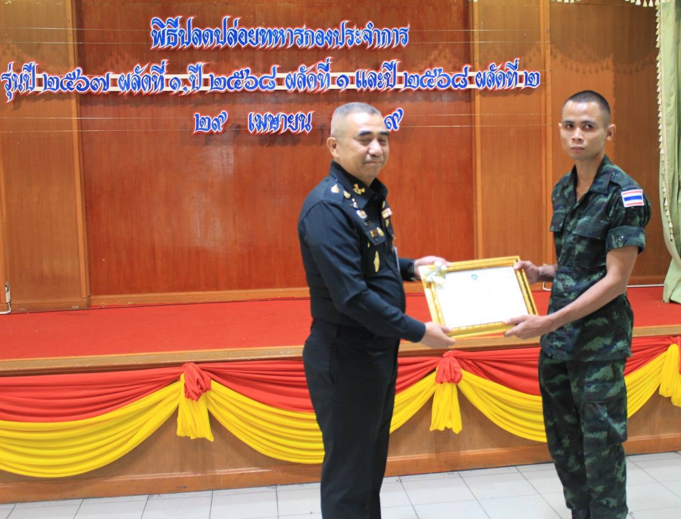 จากนั้นผู้บัญชาการมณฑลทหารบกที่ 13 ได้เป็นประธานในการประกอบพิธีปลดปล่อยทหารกองประจำการ รุ่นปี 2567 ผลัดที่ 1 รุ่นปี 2568 ผลัดที่ 1 และรุ่นปี 2568 ผลัดที่ 2 ซึ่งตัวแทนทหารกองประจำการได้กล่าวถึงความรู้สึกที่เข้ามารับราชการทหาร จากนั้นผู้บัญชาการมณฑลทหารบกที่ 13 และนายทหารชั้นผู้ใหญ่ ได้มอบสมุดประจำตัวให้กับทหารที่ปลดประจำการในครั้งนี้ นอกจากนี้ยังได้มอบใบประกาศนียบัตรแสดงความยินดีที่ทหารกองประจำการ ที่สามารถสอบเข้ารับราชการเป็นนักเรียนนายสิบ พร้อมกับได้ให้โอวาทแก่ทหารที่จะปลดประจำการว่าขอให้ทุกนายที่จะปลดไปเป็นทหารกองหนุนทุกคนประพฤติตนเป็นคนดีของสังคม ขอให้ระลึกอยู่เสมอว่าทุกคนยังคงเป็นทหารที่เป็นกำลังสำคัญยิ่งของชาติ และประชาชน รวมทั้งขอบใจที่ทุกคนมีความตั้งใจในการปฏิบัติหน้าที่อย่างเต็มความสามารถ นอกจากนี้ยังได้ให้การช่วยเหลือพี่น้องประชาชนในยามประสบภัยต่าง ๆ พร้อมกันนี้ก็ขอให้ทุกคนเป็นคนดีของสังคมหลีกเลี่ยงจากยาเสพติด หากมีข่าวของผู้ที่จะไม่ประสงค์ดีต่อประเทศชาติก็ขอให้รีบแจ้งมายังหน่วยได้ทุกวันเวลา