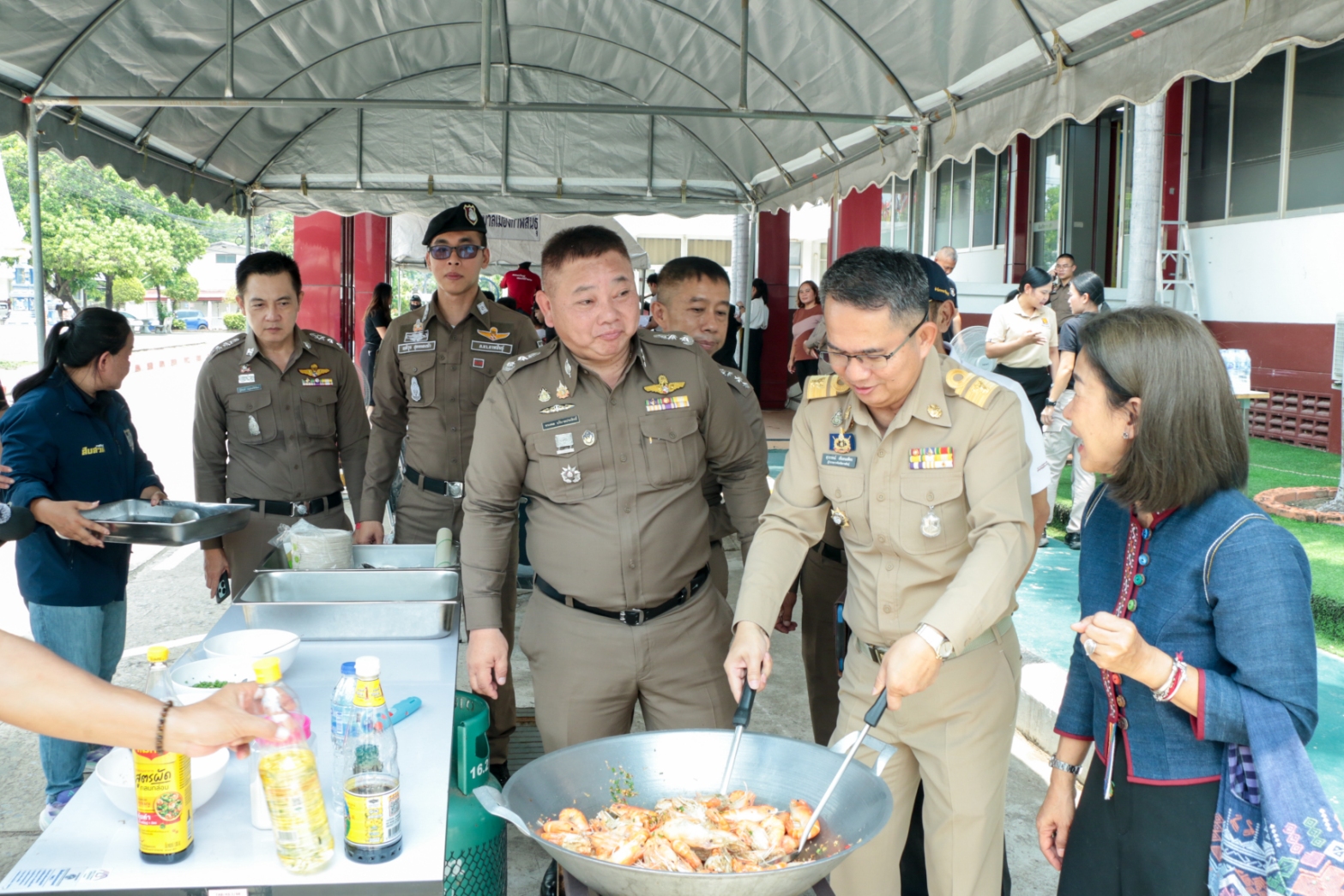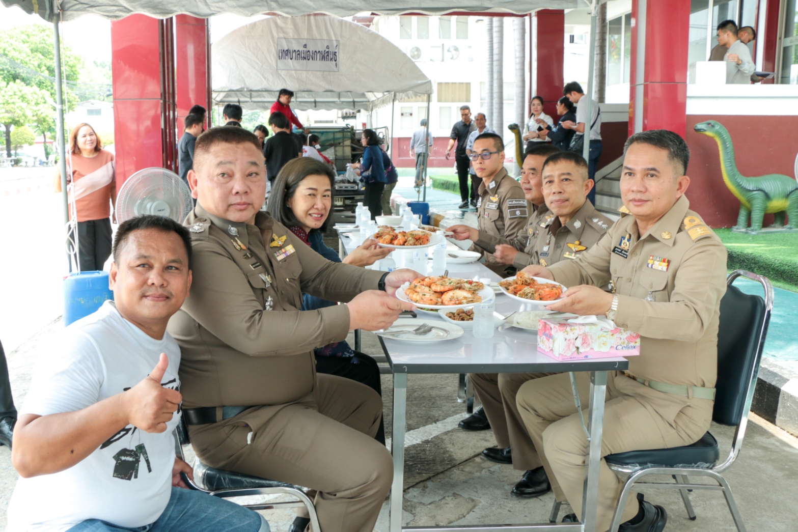 ซึ่งในวันนี้ ทั้งผู้ว่าฯ และผู้การฯ ไม่ได้มาจับโจร แต่เปิดพื้นที่หน้าภ.จว.กาฬสินธุ์ จับกุ้งและจำหน่ายกุ้งก้ามกรามกาฬสินธุ์ ซึ่งเป็นสินค้าสิ่งบ่งชี้ทางภูมิศาสตร์ (GI) ลำดับที่ 4 ของจังหวัด และลำดับที่ 256 ของประเทศไทย เพื่อส่งเสริมและสนับสนุนเศรษฐกิจชุมชน พร้อมสร้างความเชื่อมั่นในคุณภาพสินค้า และร่วมภาคภูมิใจกับสินค้าท้องถิ่นของ จ.กาฬสินธุ์ พร้อมทั้งลงมือโชว์ฝีมือกุ้งคั่วพริกเกลือ สร้างสีสัน และบรรยากาศเป็นไปด้วยความคึกคักอีกด้วย