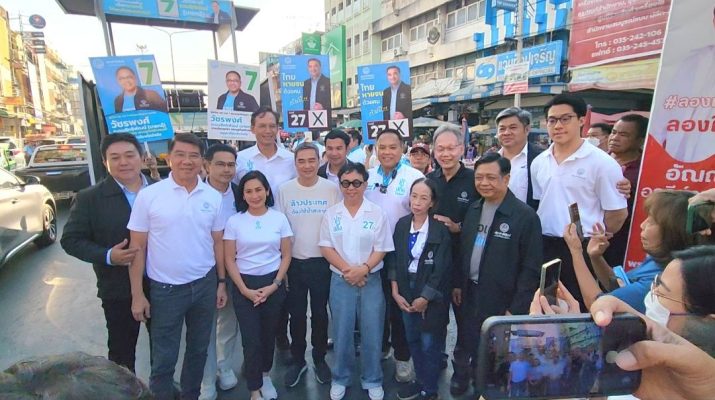 อภิสิทธิ์ เวชชาชีวะ ลงพื้นที่ตลาดเจ้าพรหมพร้อม “กรณ์ จาติกวณิช” และ “การดี เลียวไพโรจน์” แคนดิเดตนายกรัฐมนตรี พรรคประชาธิปัตย์ช่วย “วัชรพงศ์ ระดมสิทธิพัฒน์” ผู้สมัคร สส.เขต 1 จ.พระนครศรีอยุธยา หาเสียงชูนโยบายรัฐซื่อสัตย์สีขาว ล้างประเทศต้องใช้น้ำสะอาด ฟื้นเศรษฐกิจอย่างยั่งยืน