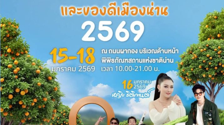 น่าน เชิญชวนท่องเที่ยว “มหกรรมส้มสีทองและของดีเมืองน่าน ประจำปี 2569” 15 – 18 มกราคมนี้