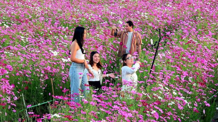 มหาสารคาม .- ดอกทานตะวันนับหมื่นต้น บานสะพรั่งสวยงามพร้อมให้ประชาชนที่สัญจรไปมาได้ถ่ายภาพ เช็คอิน ณ บึงกุย อ.โกสุมพิสัย