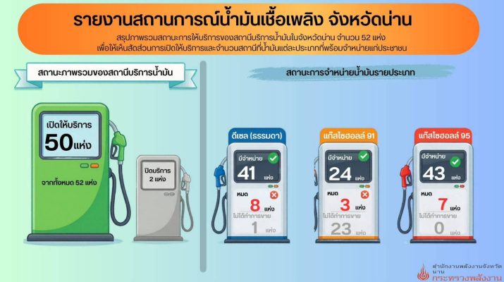 “น้ำมันน่านยังพอใช้ ไม่ต้องตื่นตระหนก” พลังงานจังหวัดยืนยัน สต๊อกยังเพียงพอ แม้บางช่วงต้องรอเติม