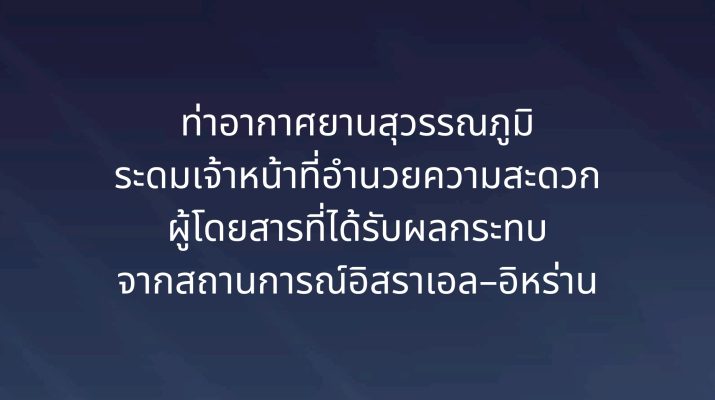 ท่าอากาศยานสุวรรณภูมิ ระดมเจ้าหน้าที่อำนวยความสะดวกผู้โดยสารที่ได้รับผลกระทบจากสถานการณ์อิสราเอล – อิหร่าน