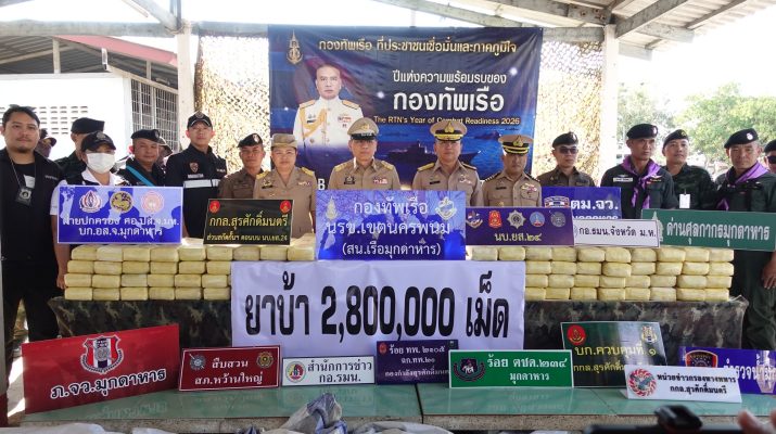 มุกดาหาร นรข. ปค. กกล.สุรศักดิ์มนตรี ตร.ภ.จว. ร่วมยึดยาบ้า 999 รวม 7 กระสอบ 2.8 ล้านเม็ด ใส่เรือกีบขนเข้าฝั่งไทย
