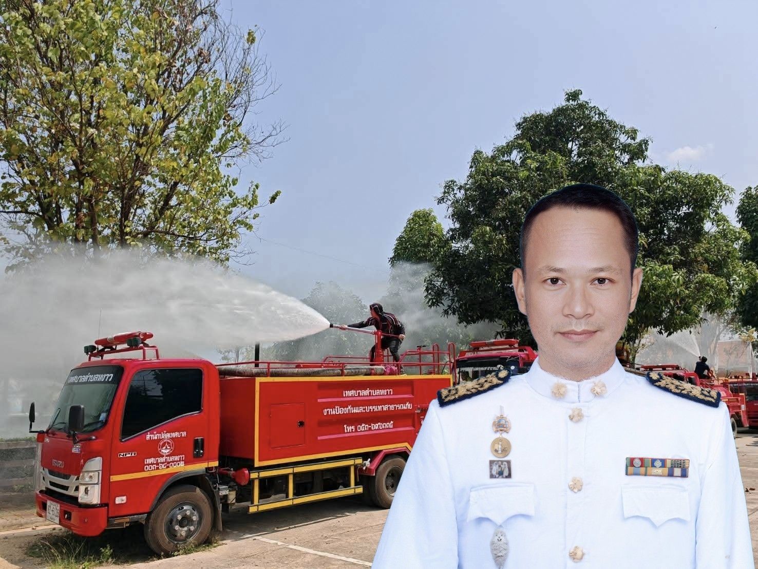 ว่าที่ พ.ต.ต.วรเมธ ธรรมจันตา นายกเทศมนตรีตำบลหงาว ขานรับคำสั่ง ผู้ว่าเชียงราย และนายอำเภอเทิง ปล่อยแถวขบวนรถน้ำร่วมกิจกรรม Chiangrai Fresh Air สร้างความชุ่มชื้นฉีดพ่นละอองน้ำลดค่าฝุ่นพร้อมกันทั้งจังหวัดเชียงราย
